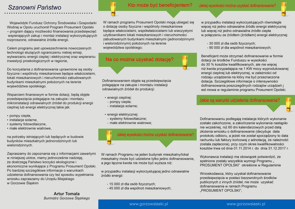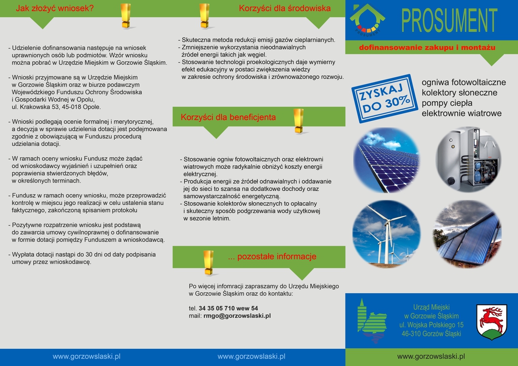 Wnioski przyjmowane są w Urzędzie Miejskim w Gorzowie Śląskim oraz w biurze podawczym Wojewódzkiego Funduszu Ochrony Środowiska i Gospodarki Wodnej w Opolu ul. Krakowska 53, 45-018 Opole