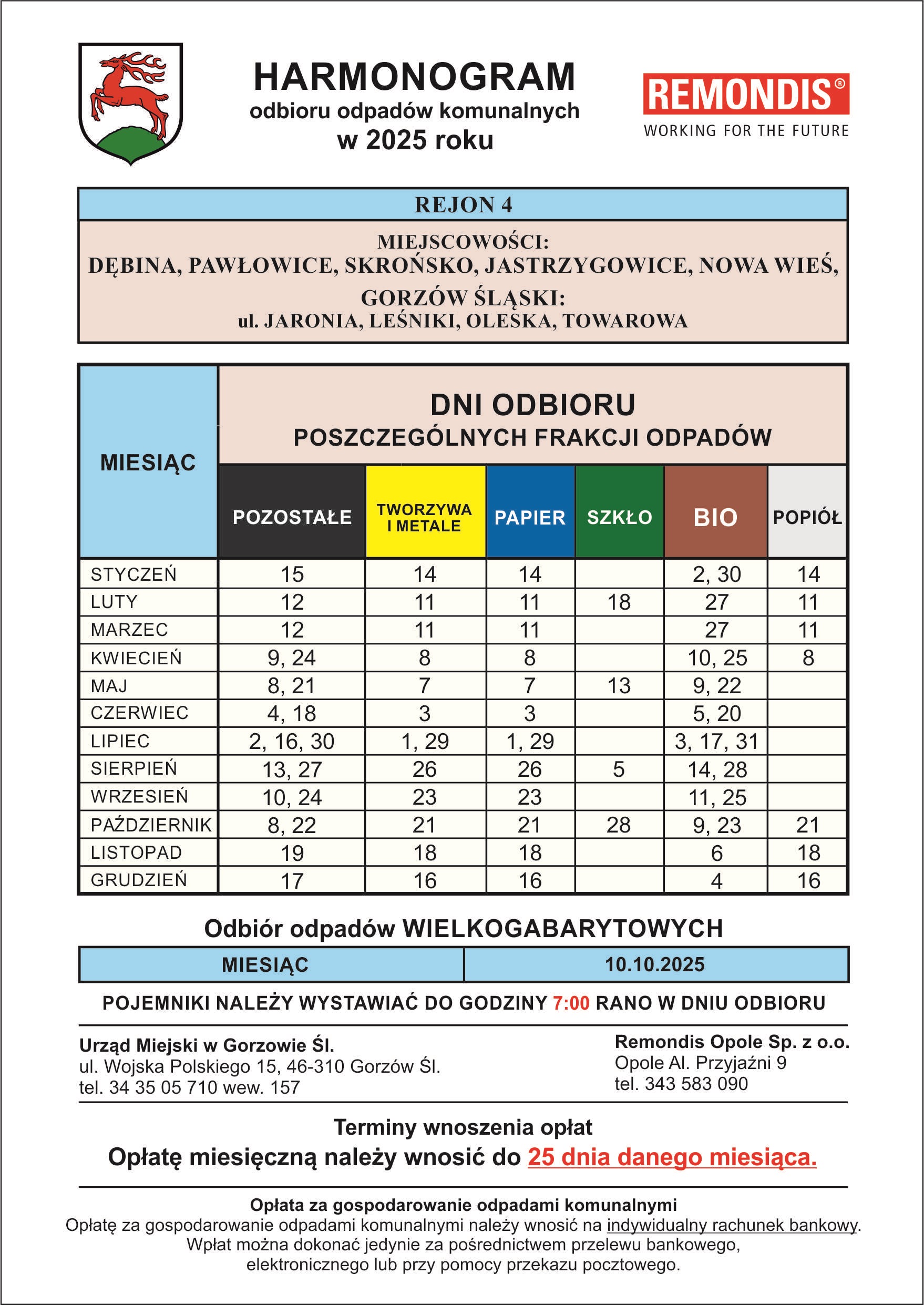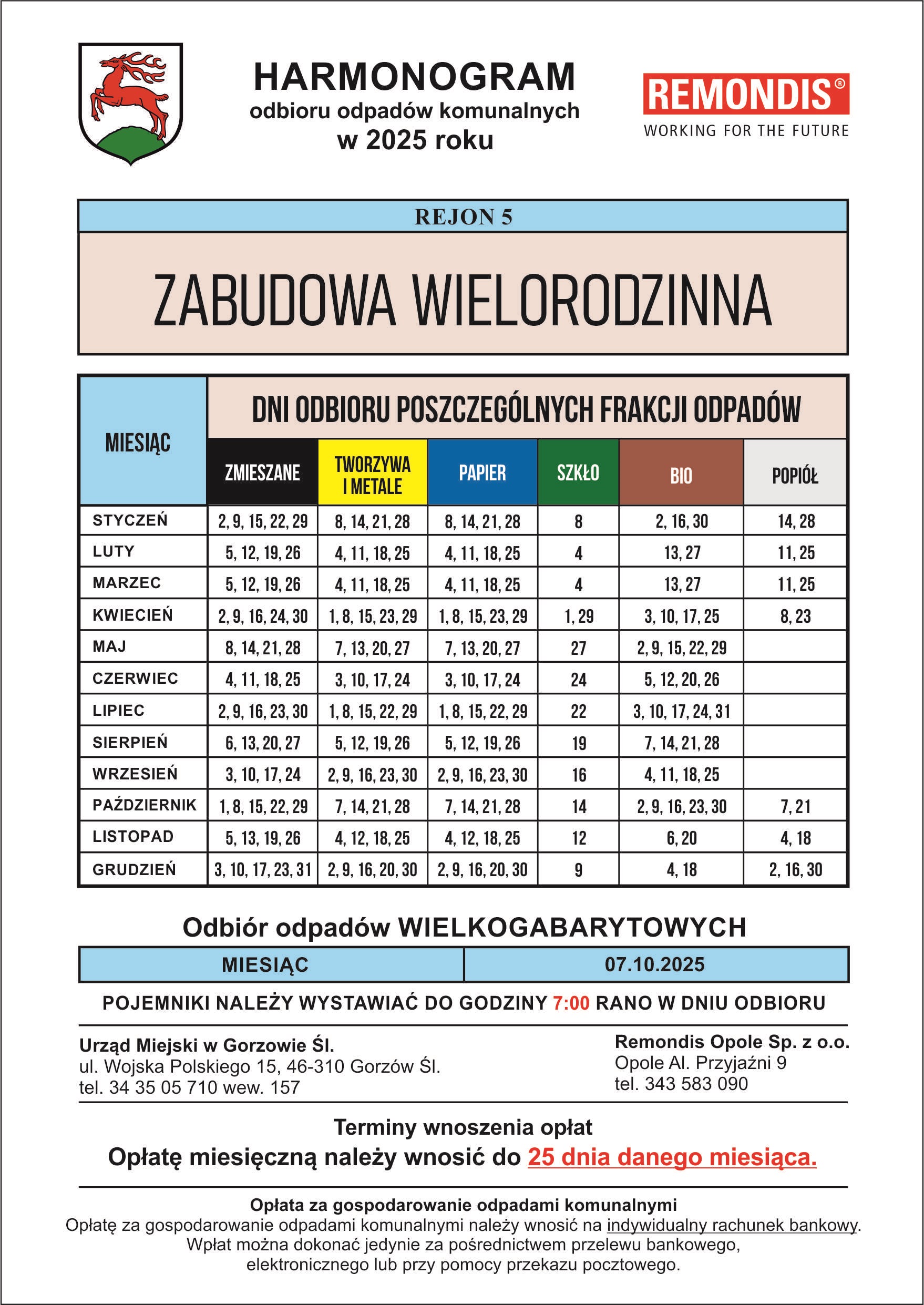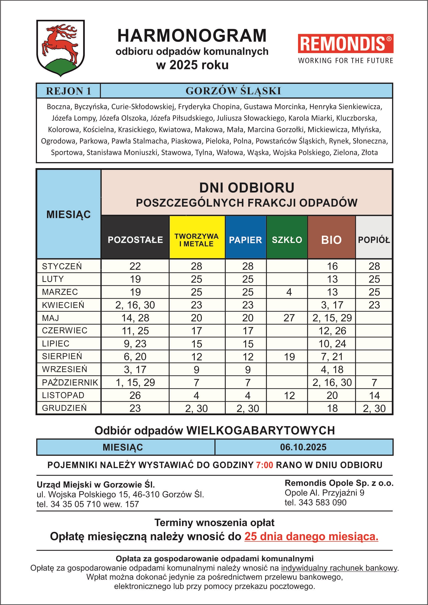 HARMONOGRAMY WYWOZU ODPADÓW KOMUNALNYCH W 2025 ROKU: