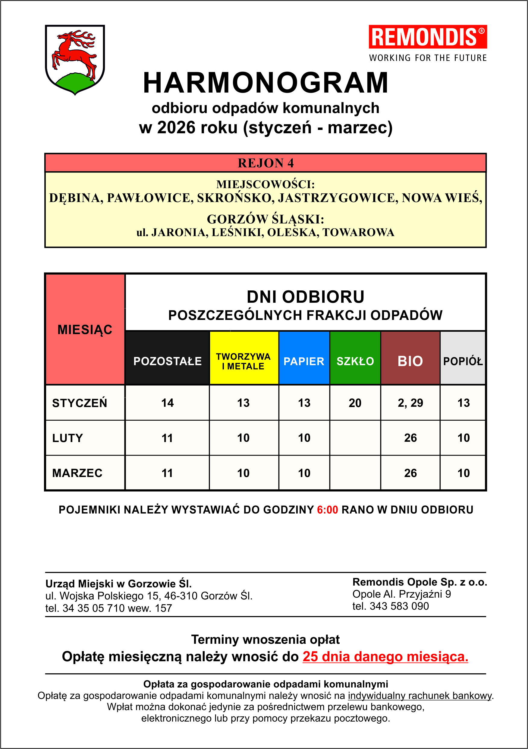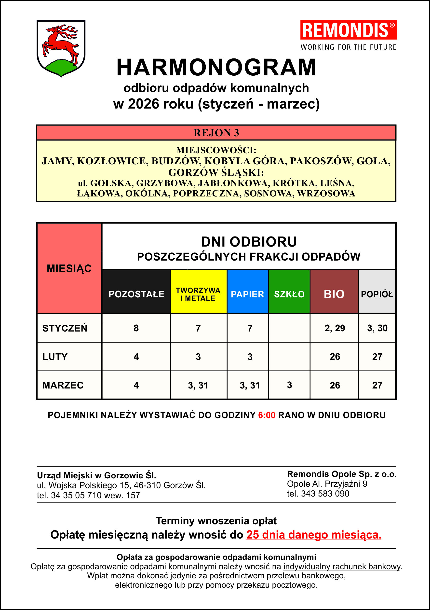 HARMONOGRAMY WYWOZU ODPADÓW KOMUNALNYCH